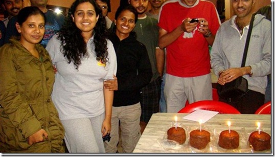 Started from Bangalore by a luxurious and comfortable VRL semi sleeper. When the bus stopped for dinner, We had celebrated the bithday of Ashwini. It was a surprise and memorable birthday for her. Thanks to Ashwal for making the arrangements of plum cakes, candles and greeting card with signatures of all the participants.